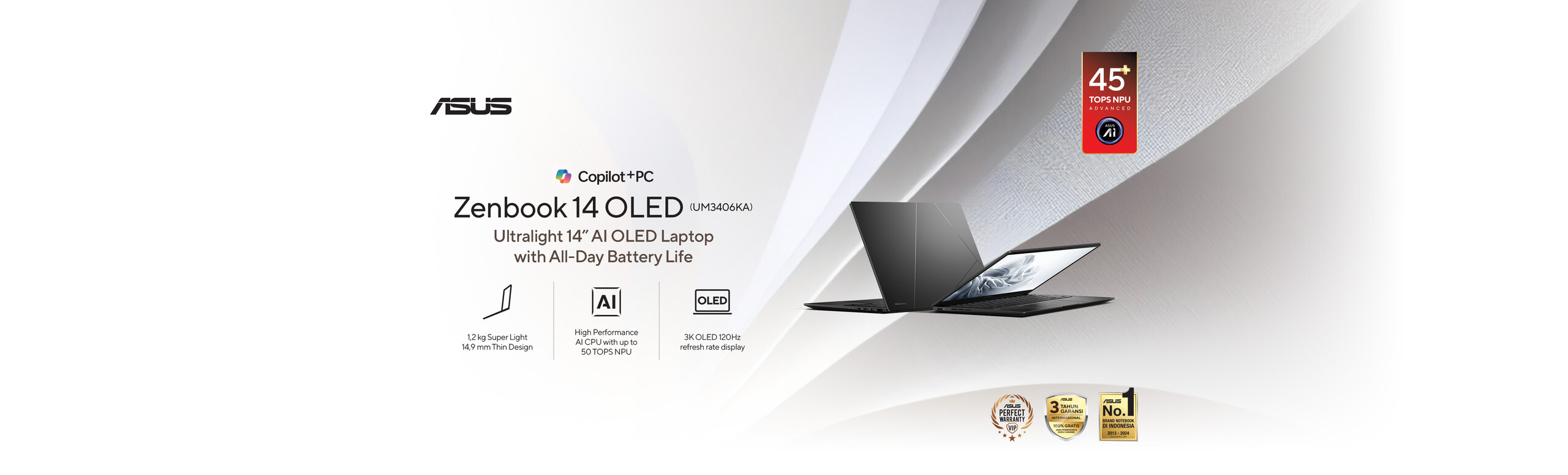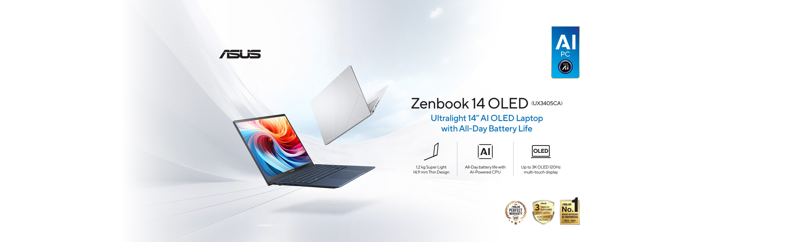 ASUS Zenbook adalah laptop tipis, ringan, dan premium, yang dilengkapi dengan teknologi terkini. Terinspirasi dari konsep quiet luxury, ASUS Zenbook menghadirkan kesan elegan dan berkelas dengan desain yang simpel namun berkarakter, dimana menggabungkan inovasi canggih dalam tampilan yang ramping dan modern.