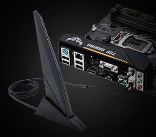 TUF B360-PRO Gaming (WI-FI) features the latest Intel 802.11ac Wi-Fi with 2x2 MU-MIMO and wide 160MHz channels, for wireless speeds of up to 1.73Gbps.* In fact, its integrated Wireless-AC 9560 Wi-Fi adapter pushes wireless data up to 2X faster than other Wi-Fi solutions — so you'll get fast, smooth transfers, even when your rig is further away from the router. Intel Wireless-AC 9650 also offers Bluetooth 5 for connections that are up to 2X faster than ever before, and with up to 4X the range.